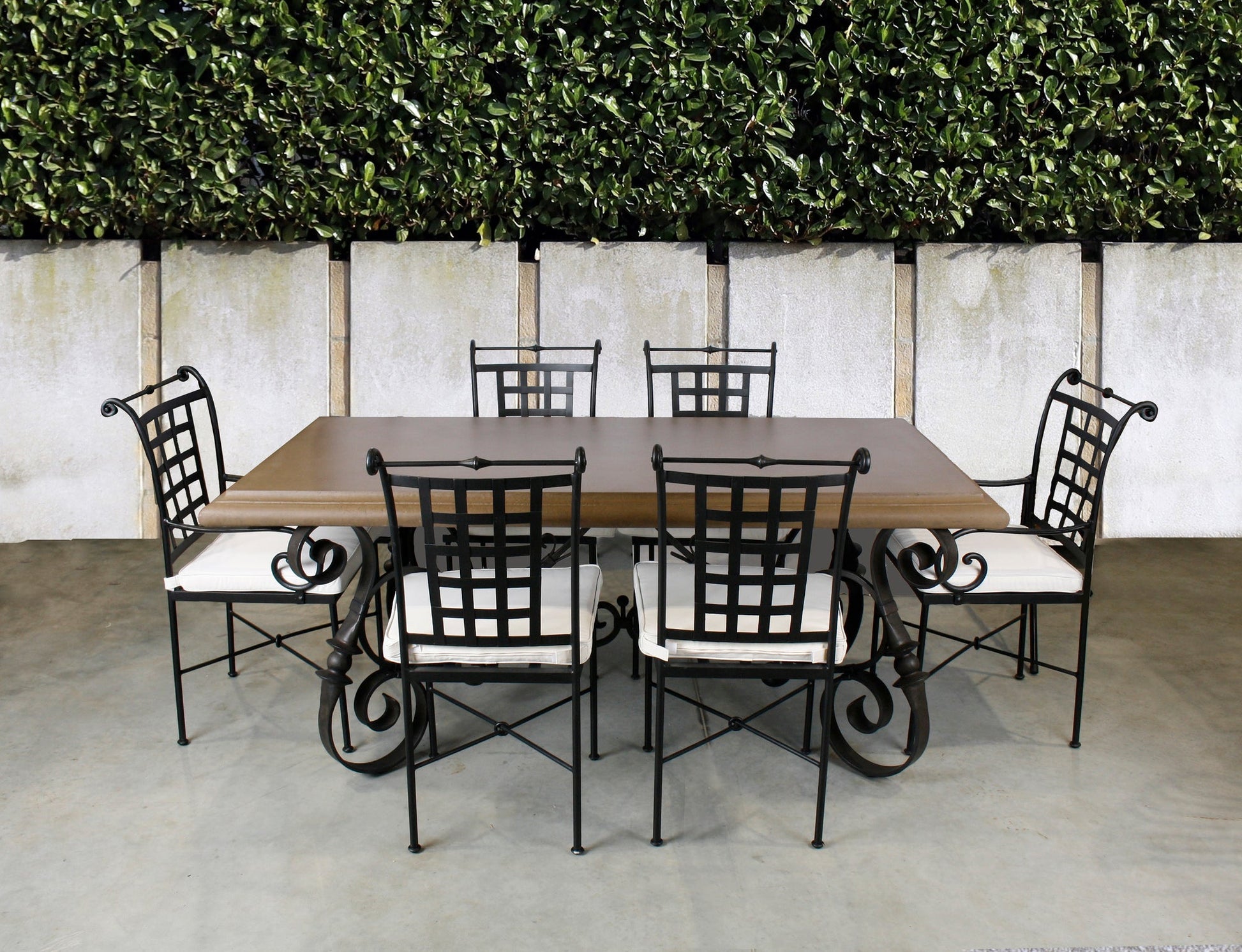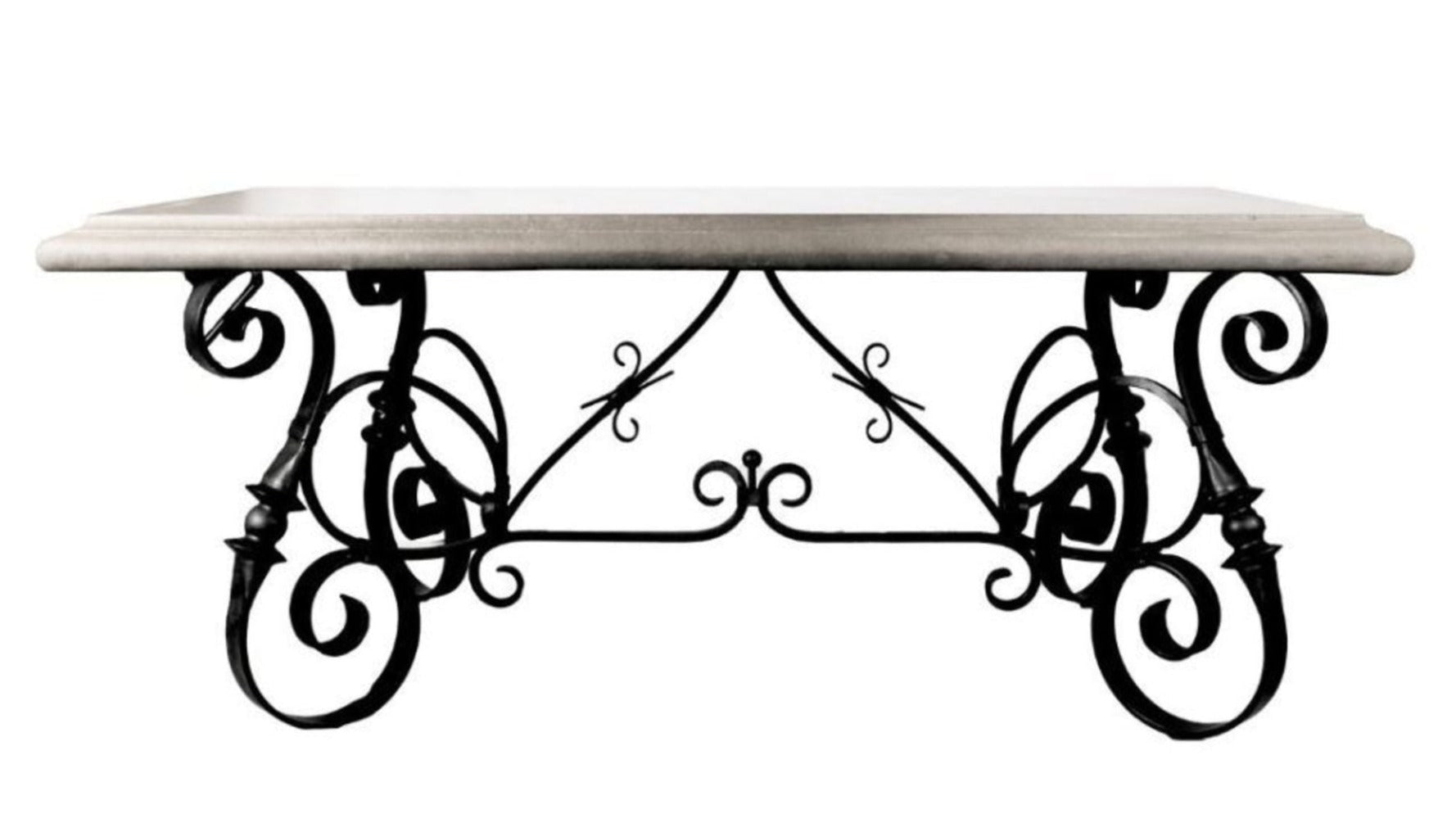 Elevate your outdoor dining experience with our Alfresco Dining Table in French Lime Wash. Made with a durable crushed stone and polyresin top and a sturdy wrought iron base, this table is perfect for backyard gatherings and alfresco meals. Bring a touch of French countryside charm to your patio today!