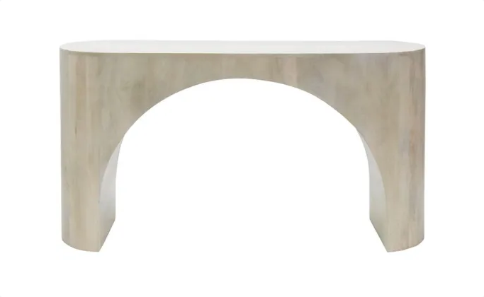 Transform your space with the Arc Console Table. Crafted from solid mango wood, this table features a stunning milk wash finish that adds warmth and character to any room. Elevate your decor and make a statement with this beautiful and durable piece.