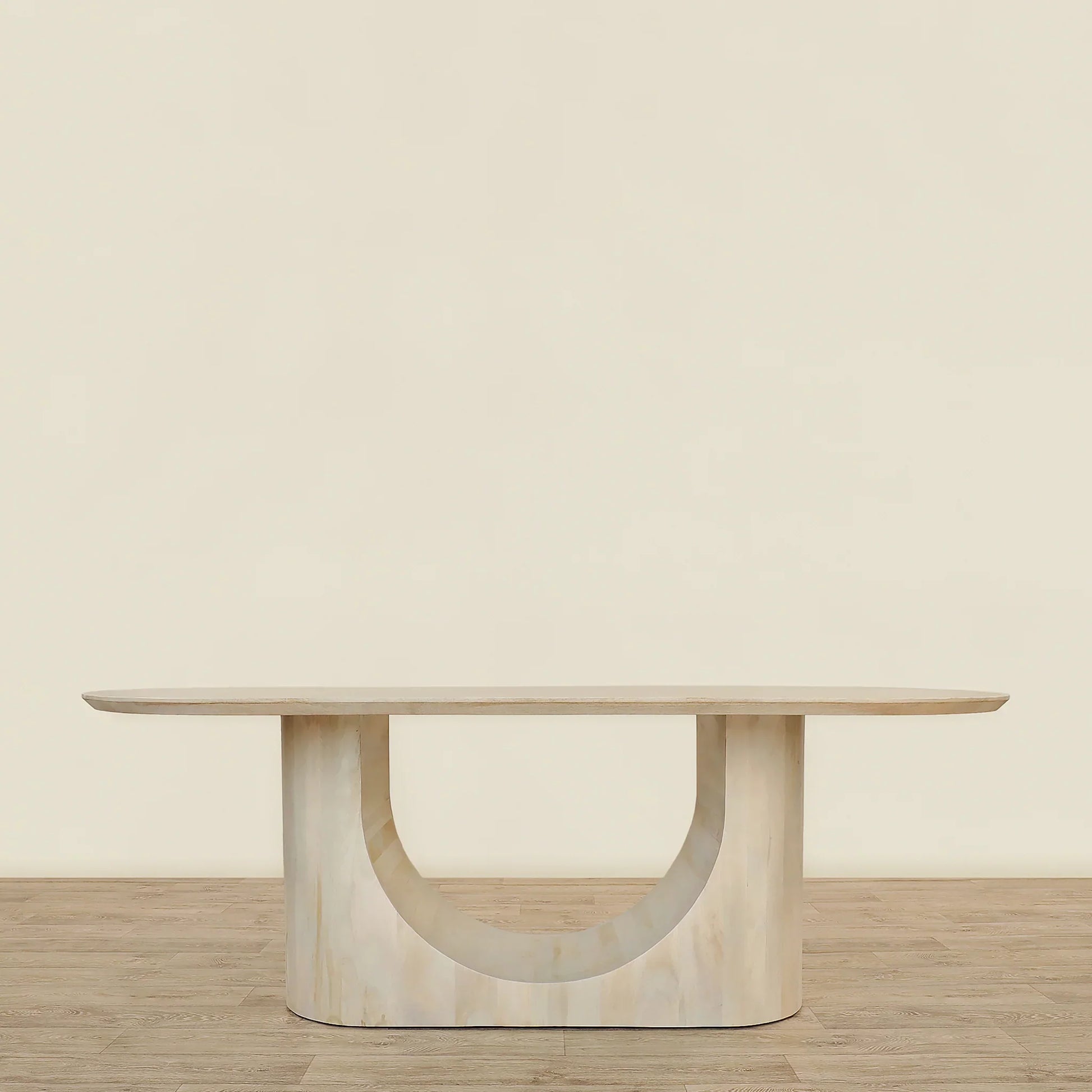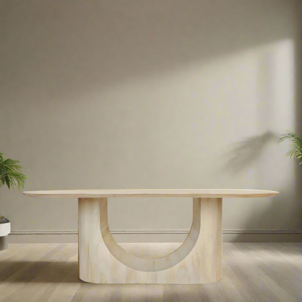Elevate your dining experience with our Arc Dining Table - 2000. Crafted from solid Mango Wood in a beautiful milk wash finish, this table is sturdy and stylish. Add a touch of elegance to any meal and make lasting memories with loved ones.