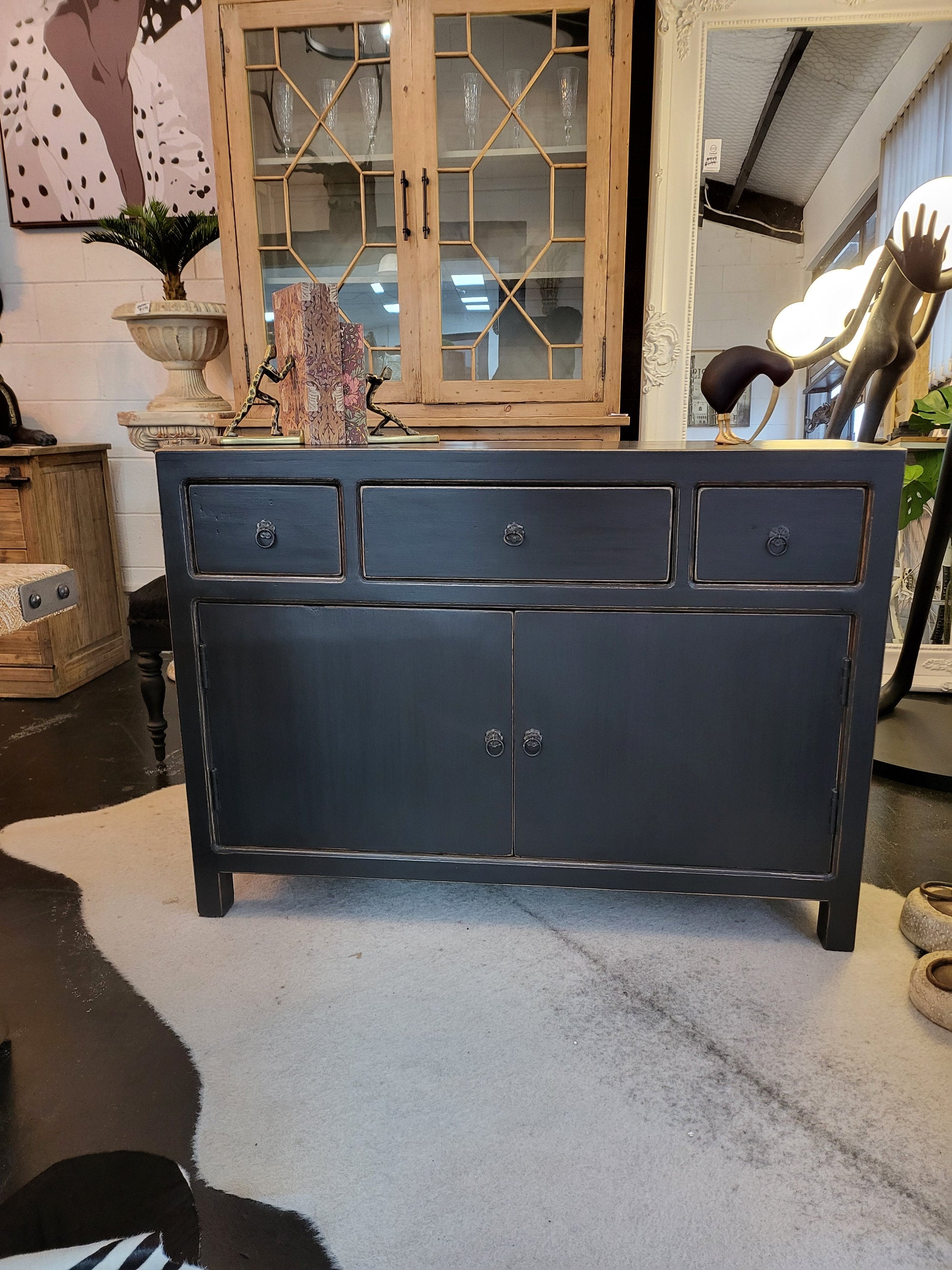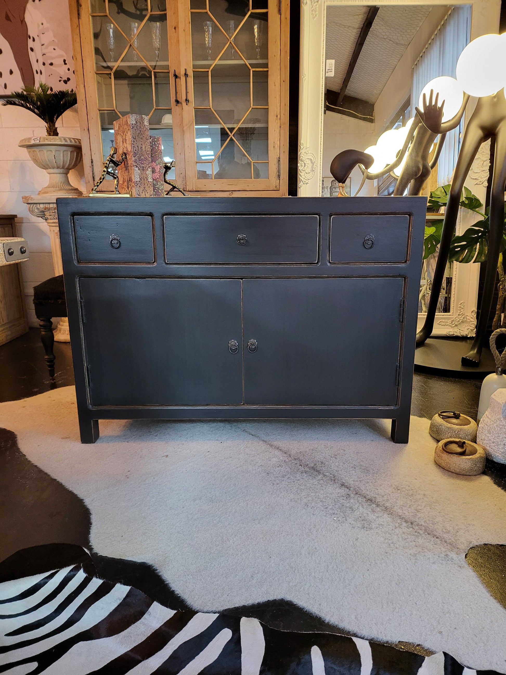 Experience the perfect blend of rustic charm and modern sophistication with our Barclay Sideboard. Finished in rich black, this statement piece offers practical storage in spacious cupboards and multiple drawers. Perfect for any room, elevate your home with this striking and functional addition.
