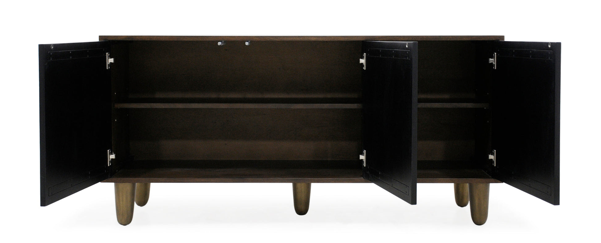 The Beleza Sideboard is perfect for bringing a touch of elegance to any interior. With its striking combination of warm iron brown, black, and brass, this mango timber piece will draw attention to any room. Featuring 3 doors and a middle shelf inside, Beleza is perfect for storing all your belongings in a stylish way.