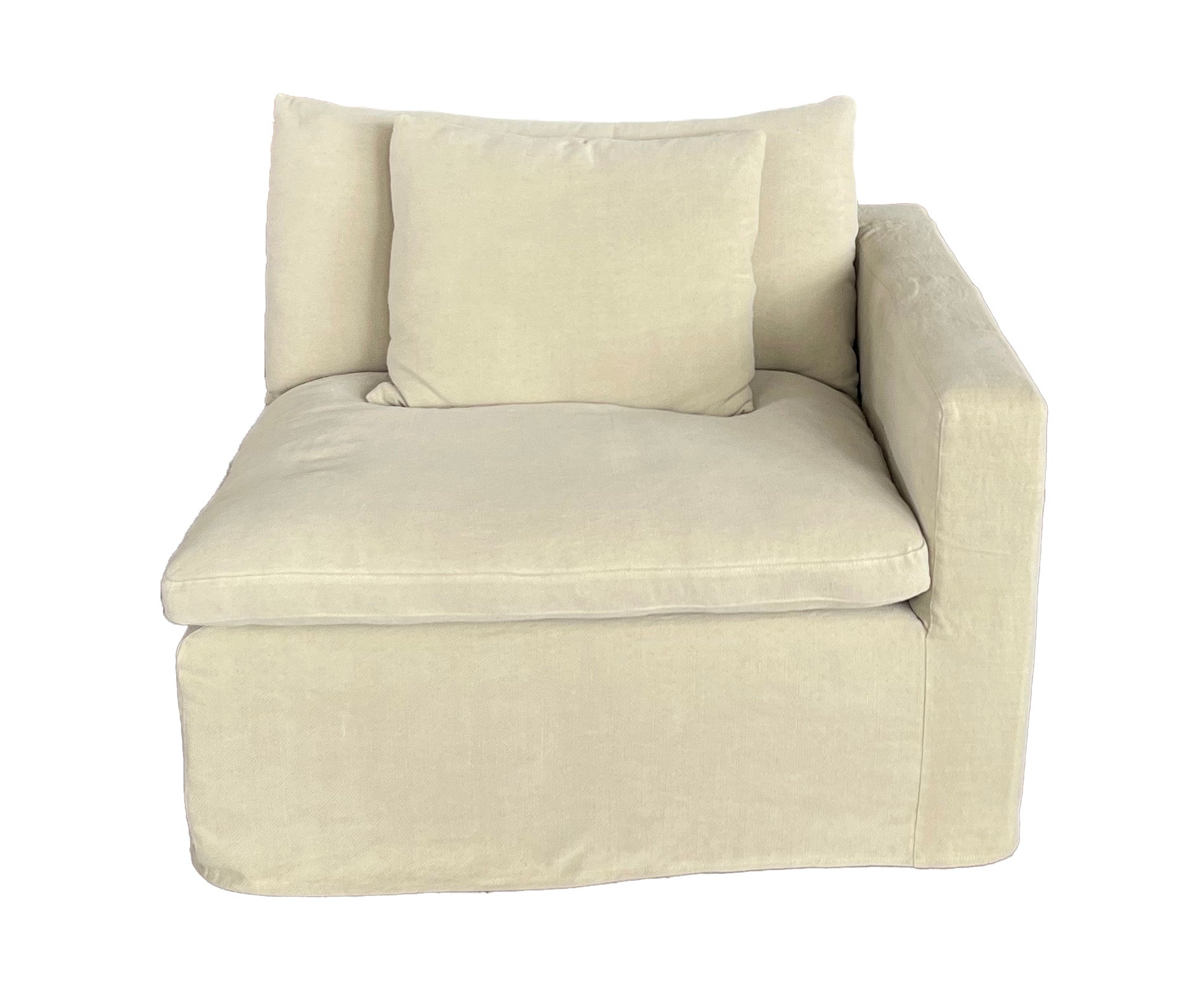 Introducing the Carlton Slip Cover Modular Sofa with Reversible Chaise in a soft, luxurious hemp color. Relax in style and comfort with its plush upholstery, clean lines, and generous cushioning. This versatile chaise suite offers flexibility in room placement and will elevate any living space. Experience the perfect combination of contemporary design and comfort with the Carlton Chaise Suite.