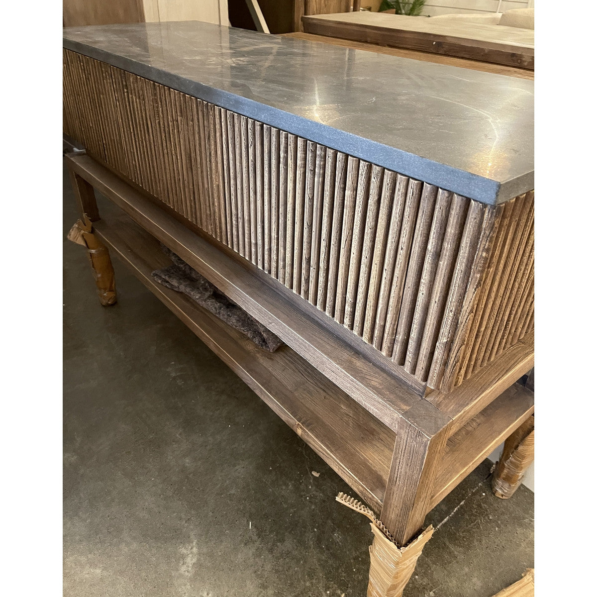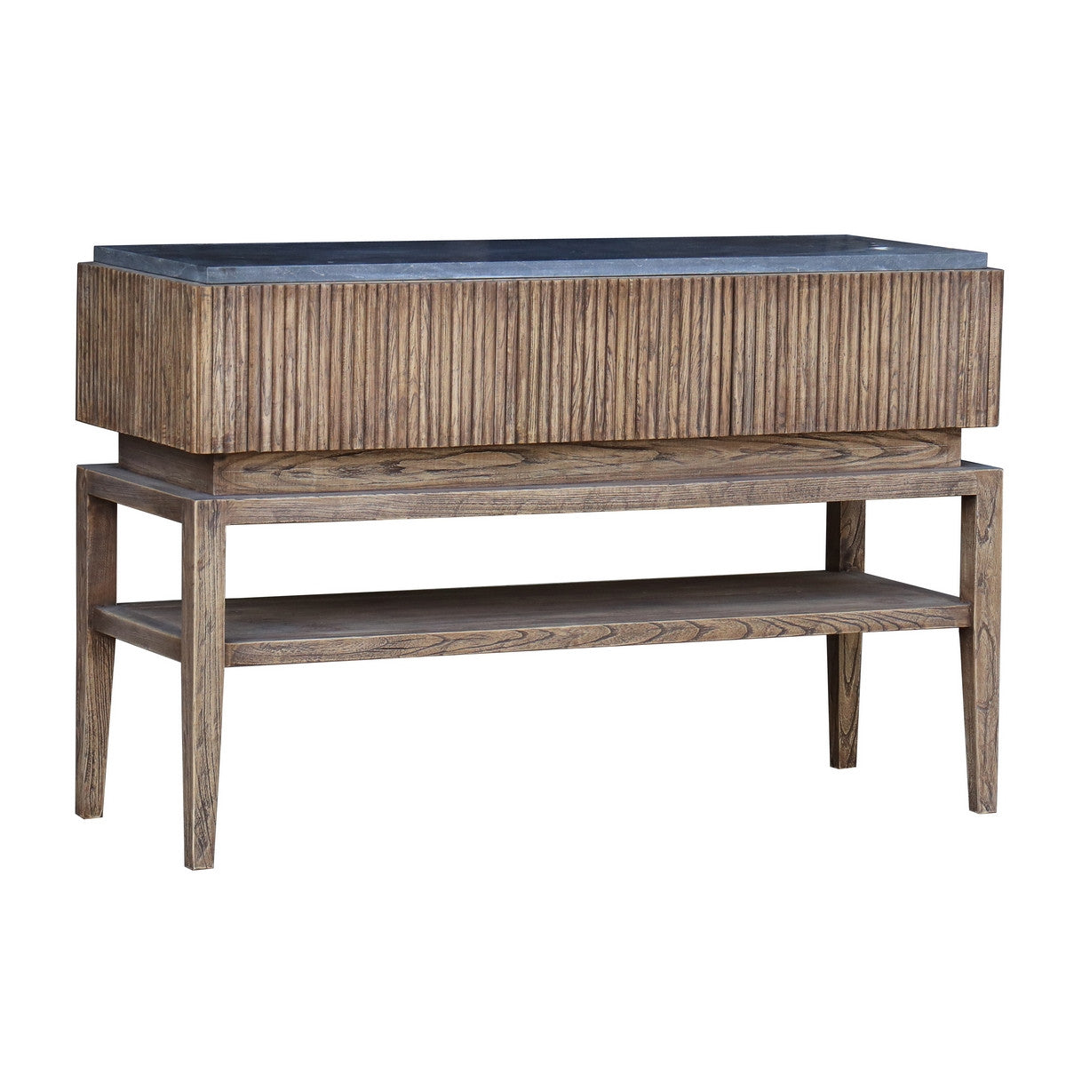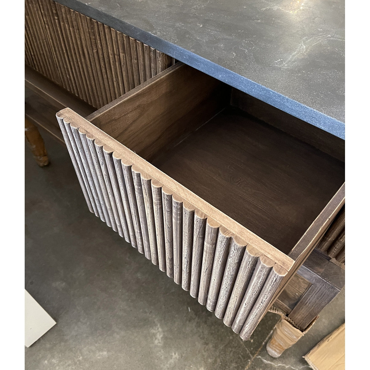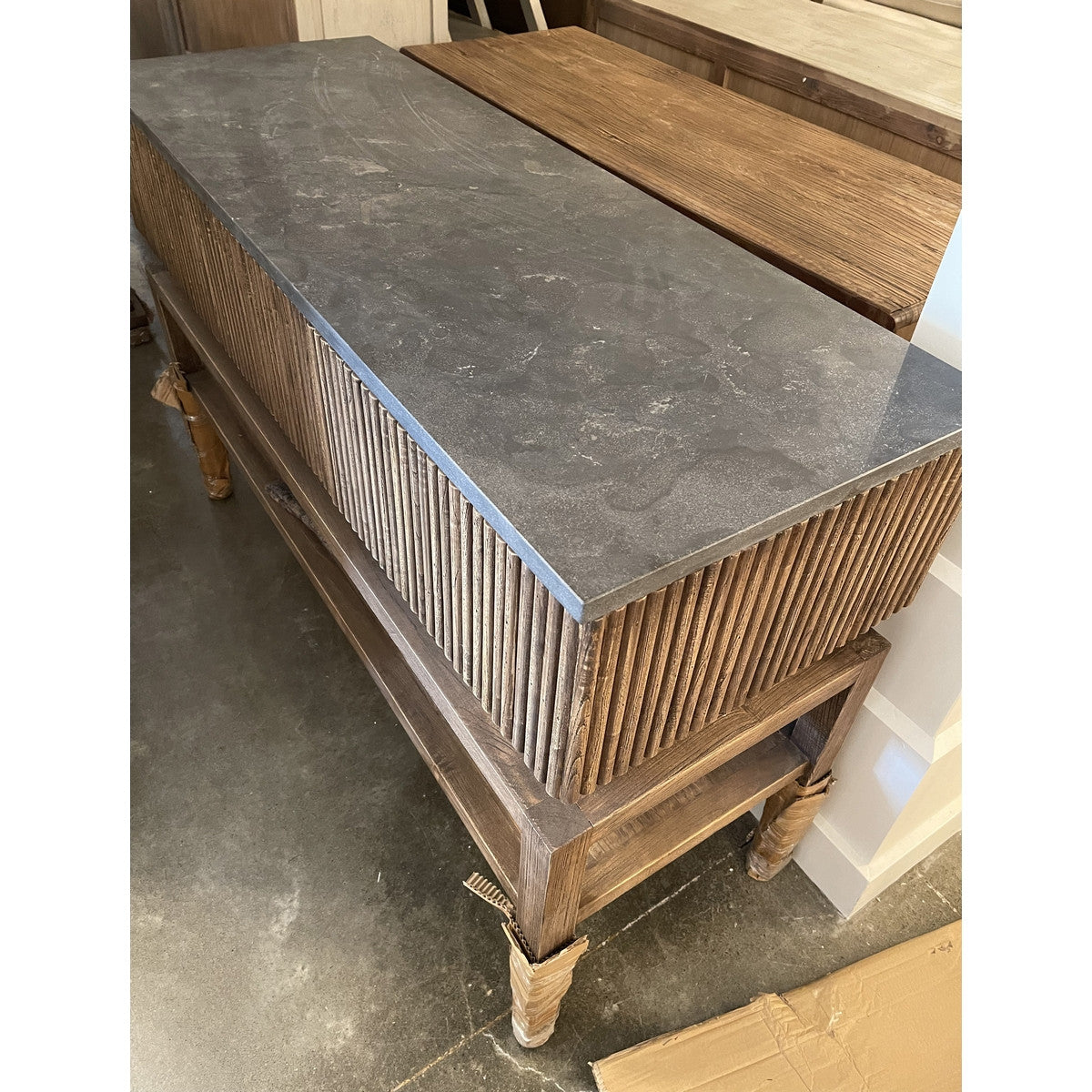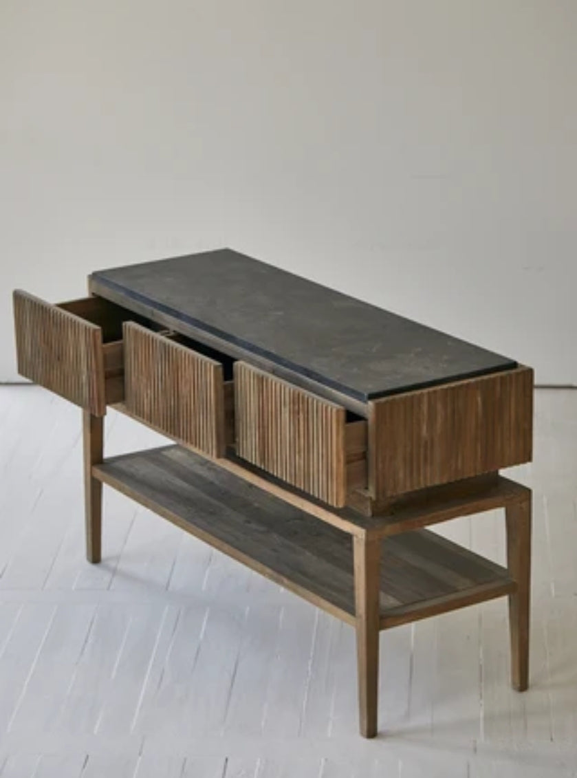 This subtlety beautiful french console is a must in any home. The natural rustic look of the console combined with the cooling of the blue stop top is sure create a pleasant calming feel to any entry way, hallway or living areas. 3 drawers