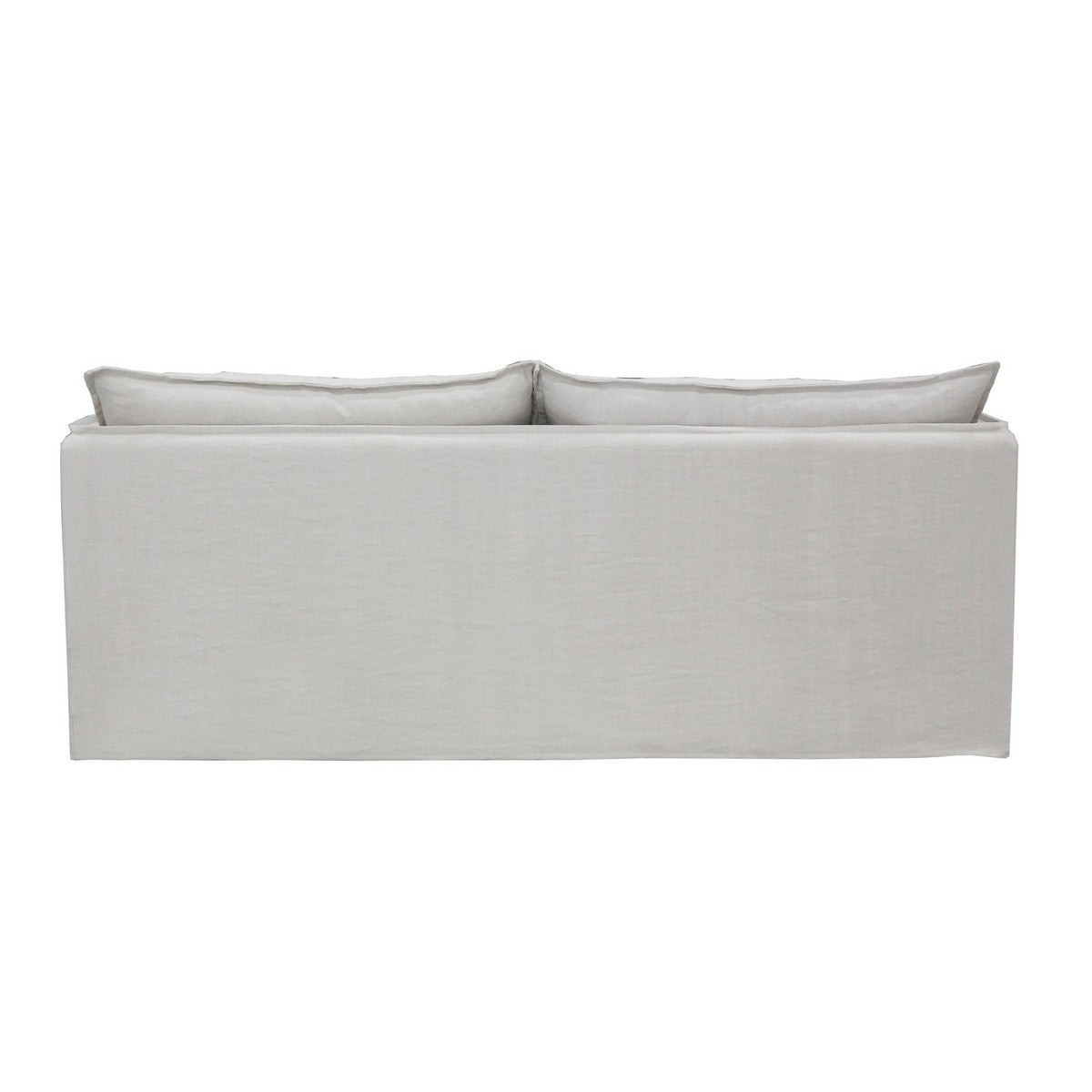 The Courtenay 3 Seat Sofa is the perfect addition to any living space. Enjoy an ultra-plush sit with a feather foam seat and cushion, all wrapped in a modern grey slip cover. Enjoy a comfortable and inviting seating experience.
