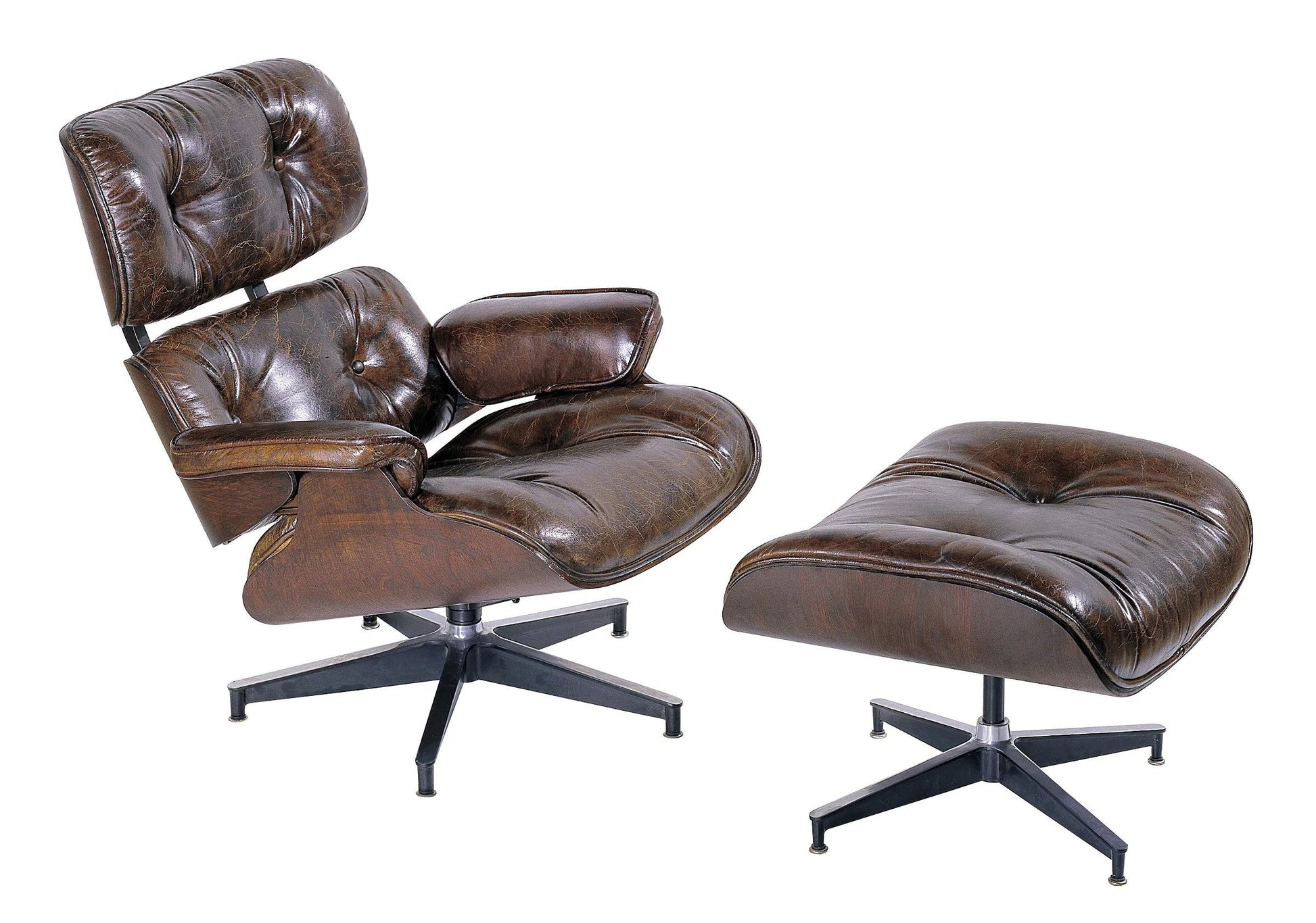 Spruce up a living, office, or entertainment area in your home with this Eames button backed chair & footstool in vintage cigar.