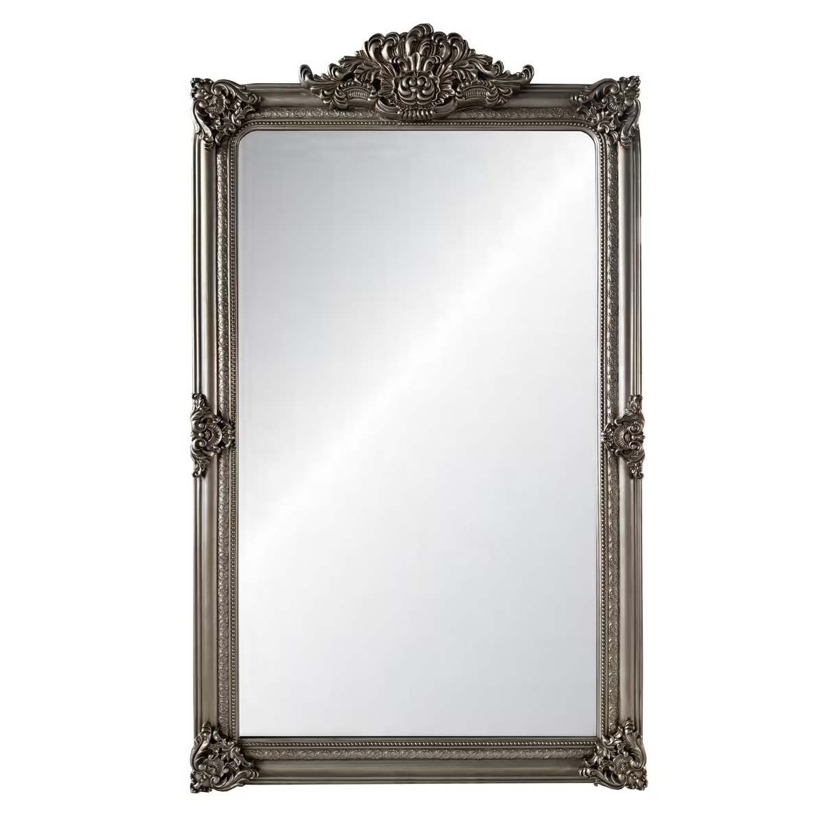 Elizabeth Ornate Beveled Floor Mirror - Antique Silver
