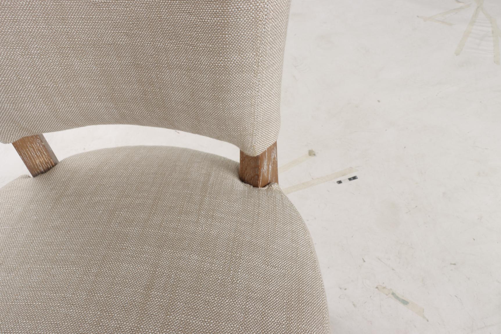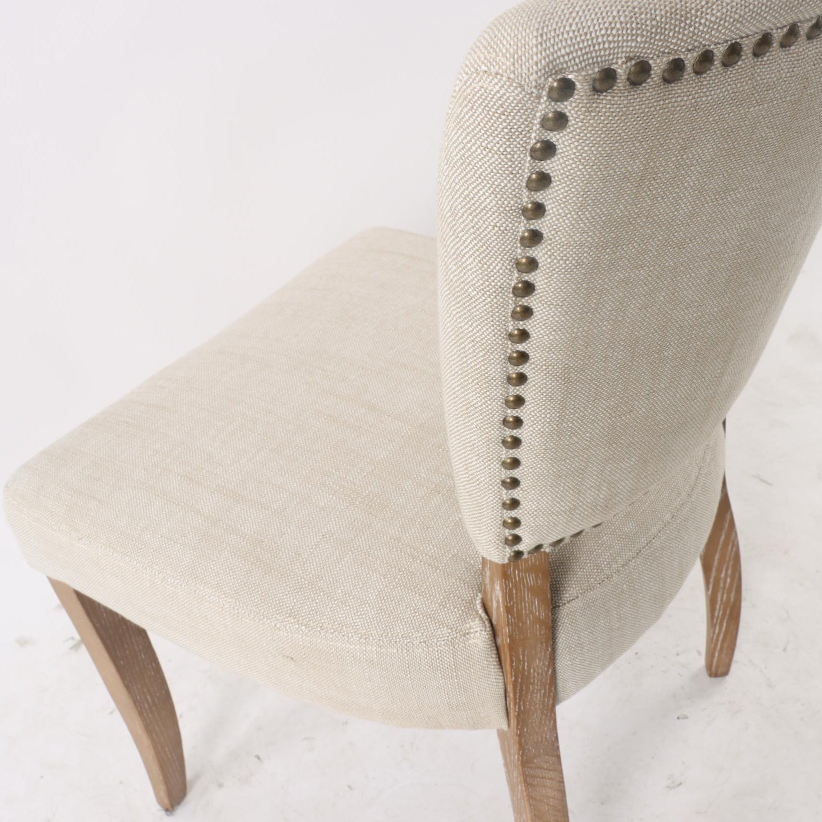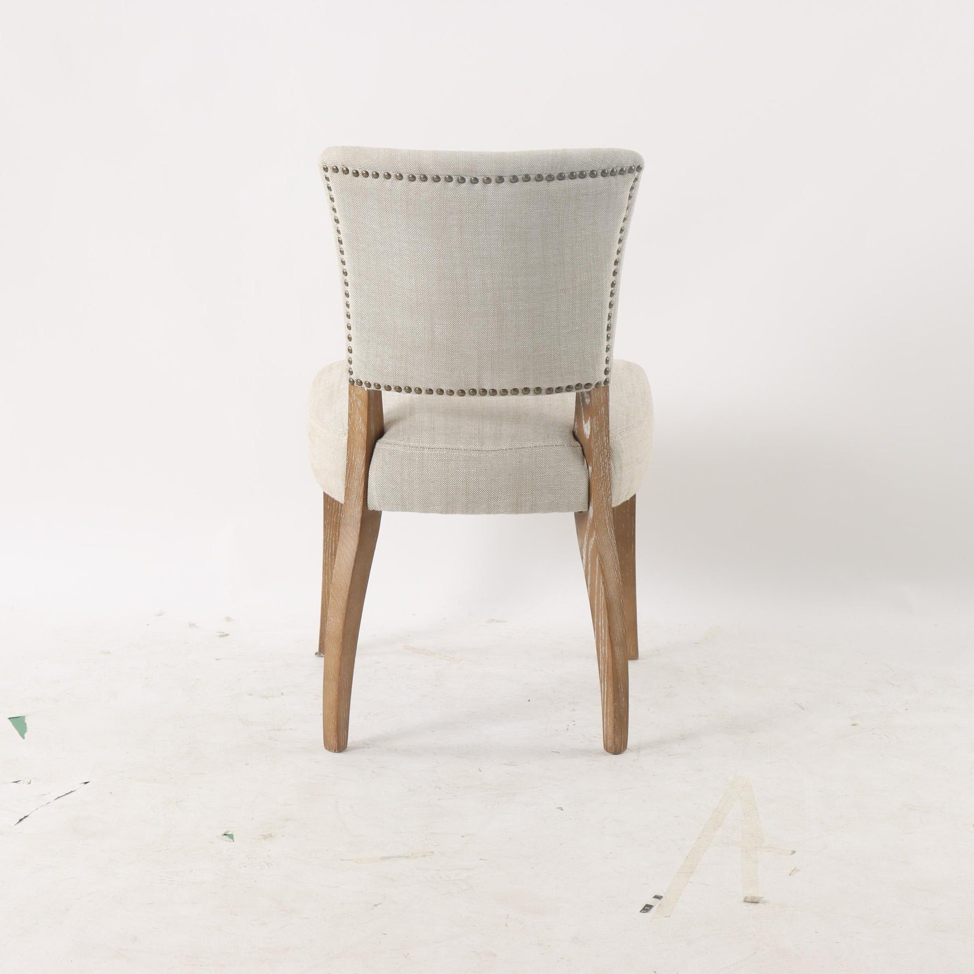 Introducing the Ezra Dining Chair, crafted with a reclaimed oak frame and natural linen upholstery. Brass studs add a touch of elegance, while the elasticated webbed seat suspension and thick foam cushion provide optimal comfort and support. Elevate your dining experience with this dynamic and resilient chair!