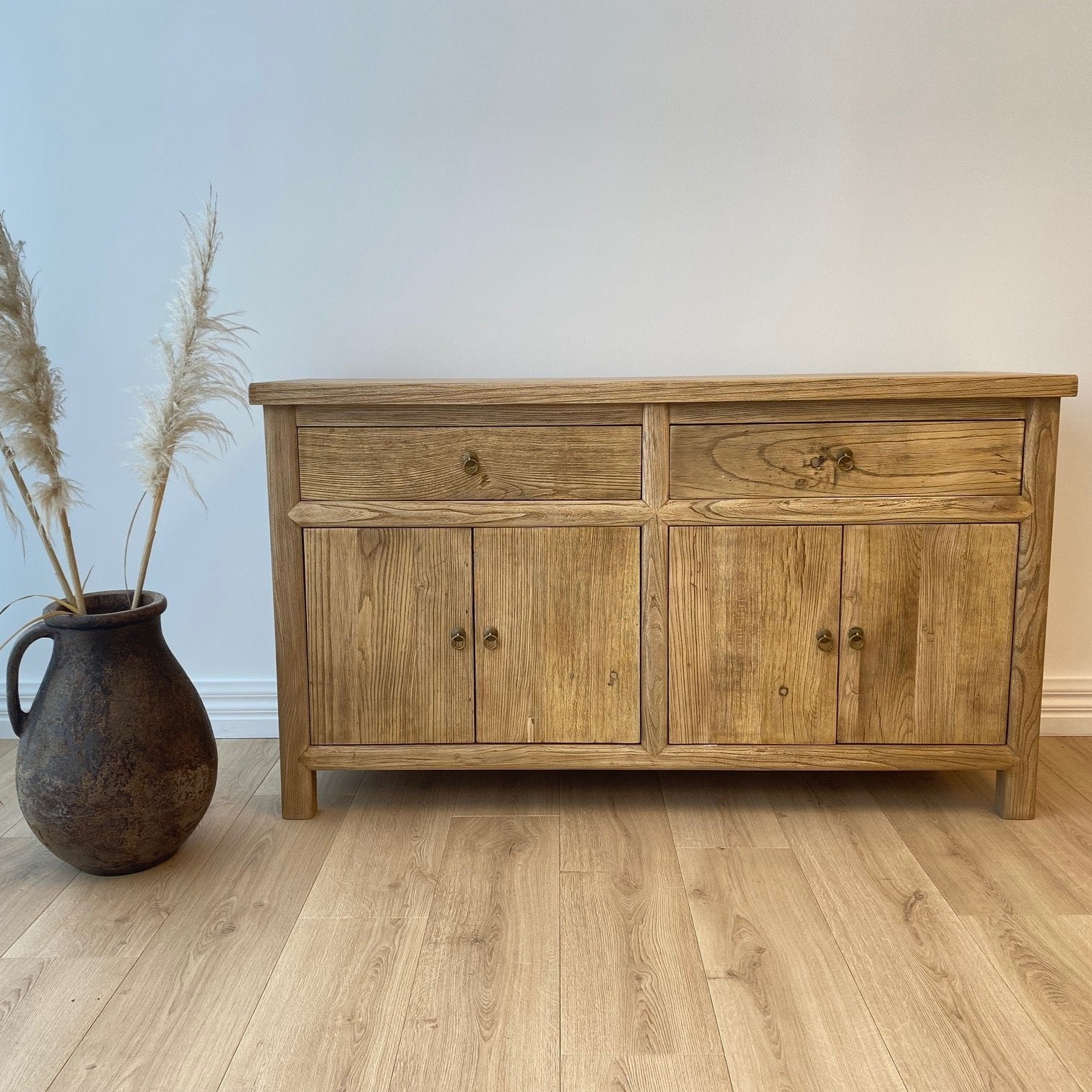 • Expertly crafted from reclaimed elm wood. Reclaimed wood features variations due to salvaged materials used might include nail heads, knots, knicks and hairline cracks, showing its authentic distressed nature.