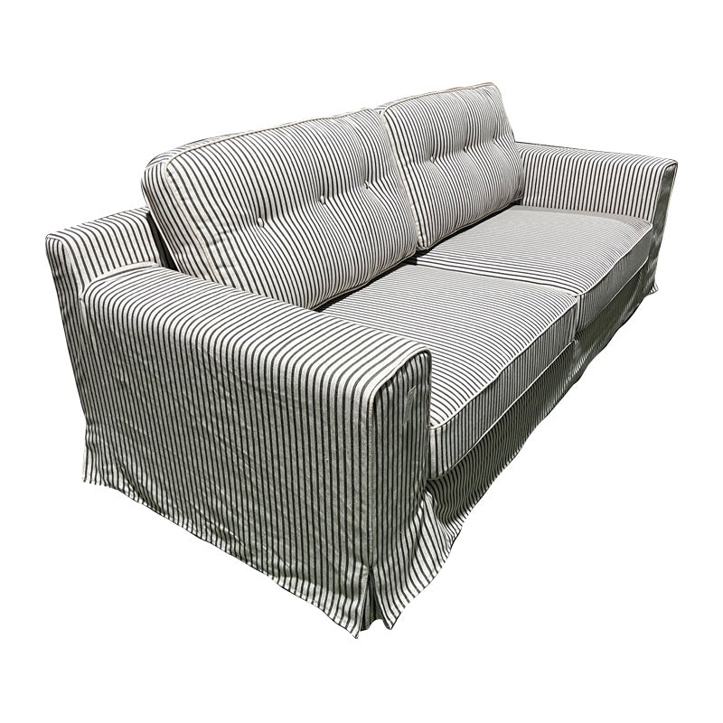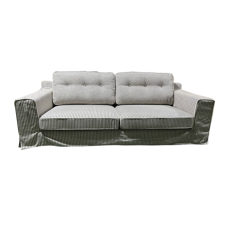 Elevate your living room with the Lusso Slip Cover Sofa in Black Stripe. The blend of 75% linen and 25% cotton not only adds a touch of glamour, but also provides a comfortable and durable seating option. Transform your space with this stylish and versatile piece!