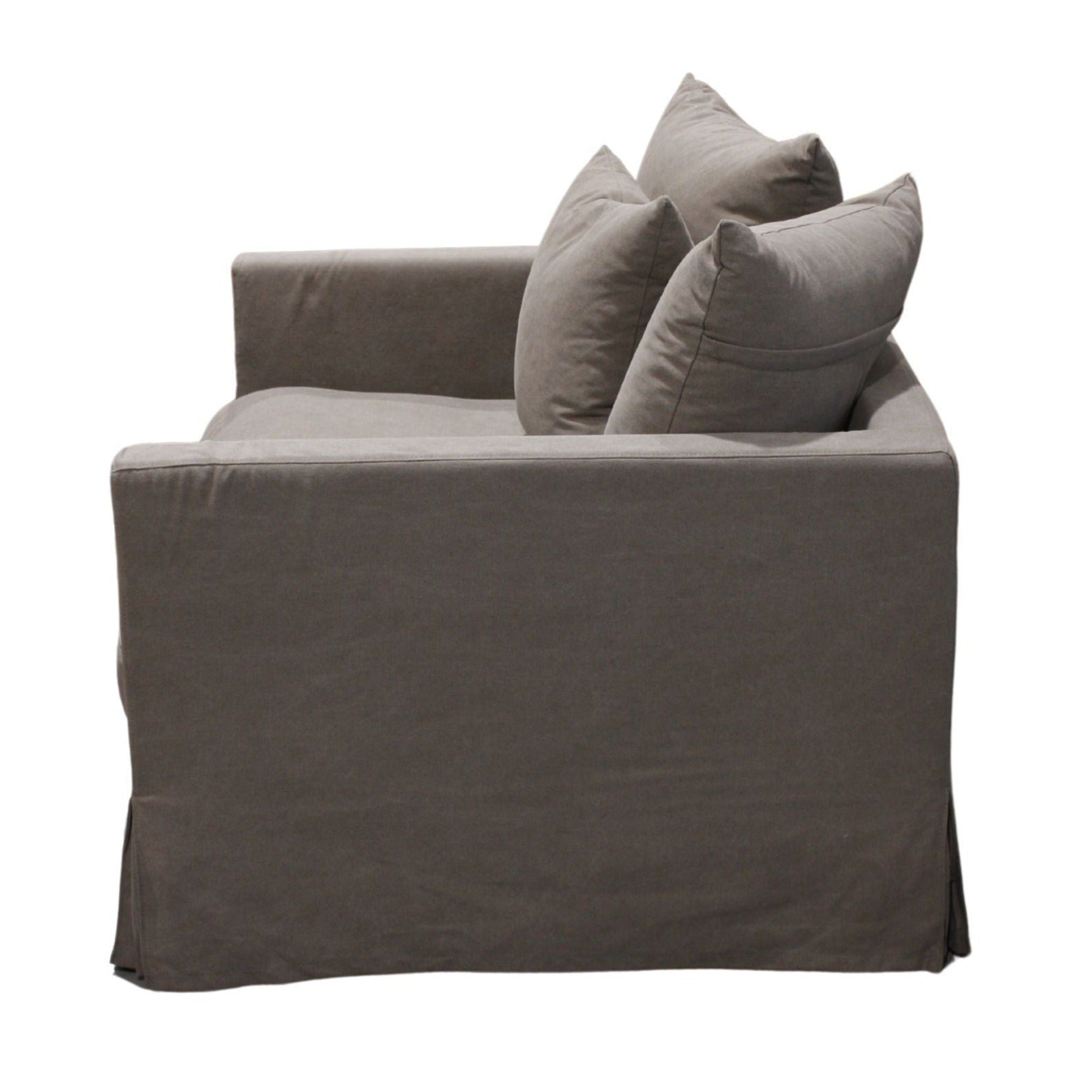 Transform your living room with our Luxe 1 Seater Sofa, designed for ultimate comfort and style. The beautiful gray slip cover adds a touch of elegance and versatility to your space. Experience luxury at its finest with this must-have addition to your home.
