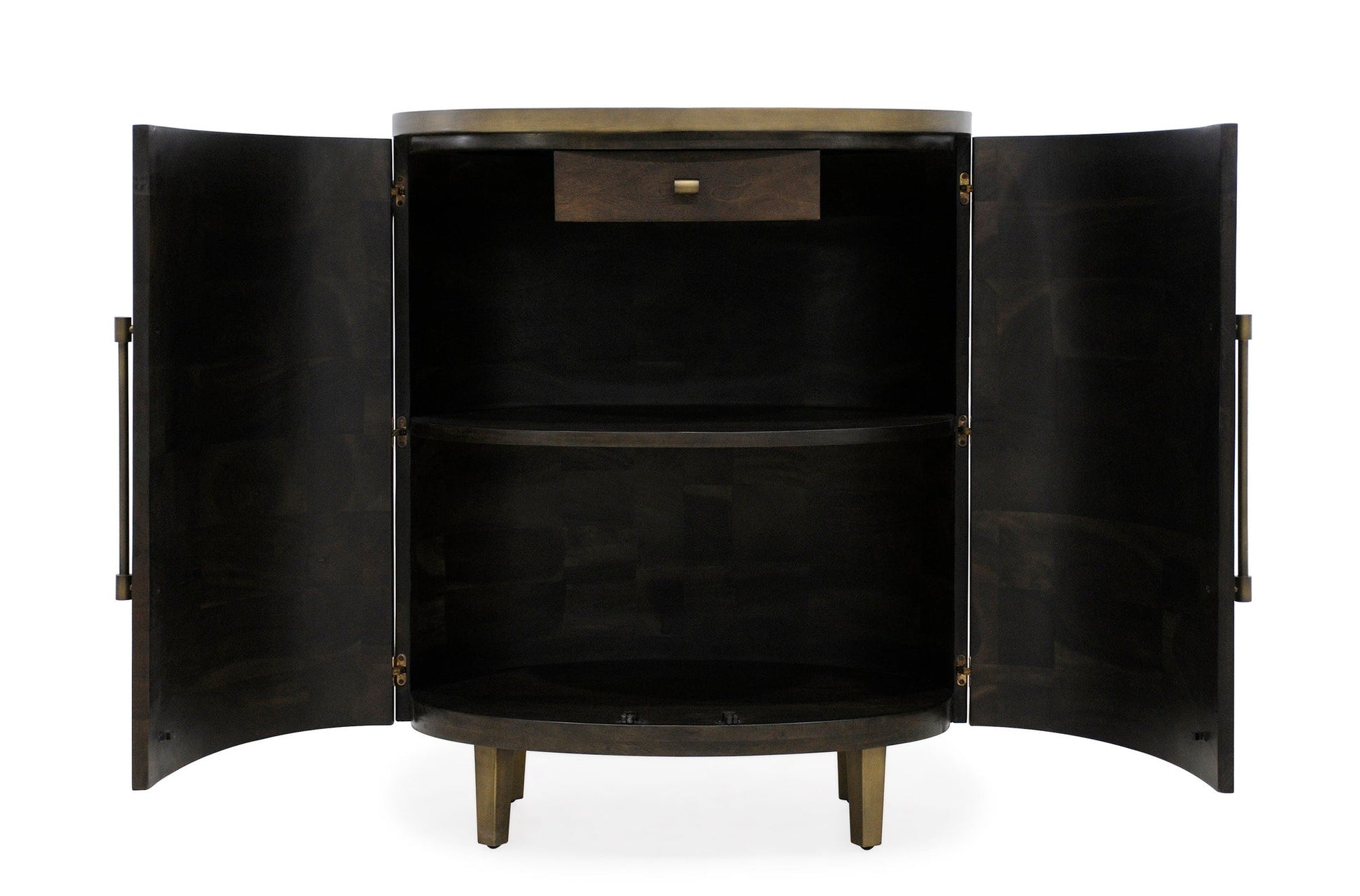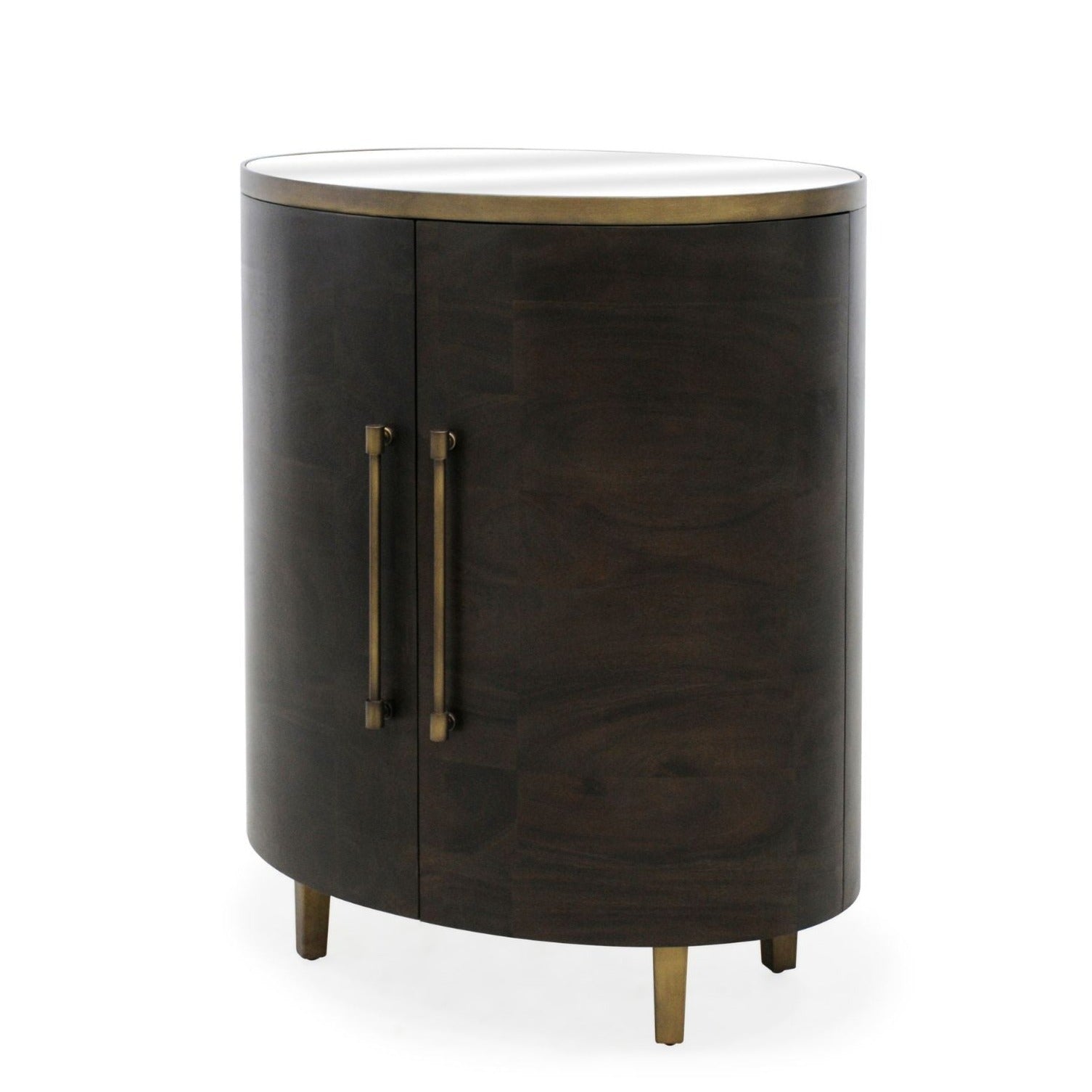 Add a touch of sophistication to your home with the Malibu Drinks Cabinet with Mirror Top. Meticulously crafted with warm iron brown & brass accents, this handsome cabinet features two doors and one drawer for ample storage of your spirits, plus a shelf in the middle for convenient access to your favorite drinks. Start the party in style with the Malibu Drinks Cabinet!