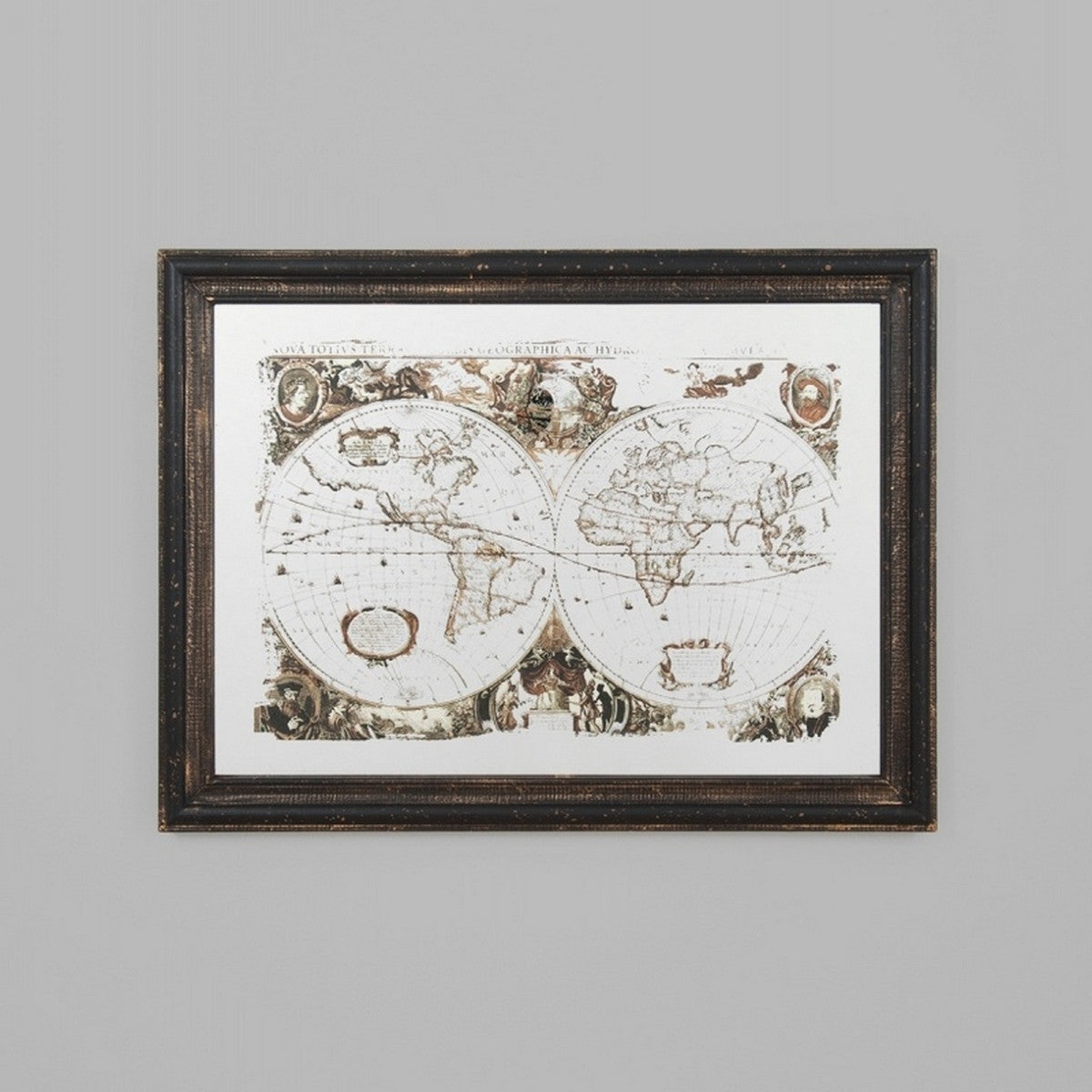 Take your wall art to the next level with our vintage-style world map! Against a mirrored background, this stunning piece adds depth and dynamic appeal to any room. With a ready-to-hang dark frame and subtle distressed finish measuring 1060mm, it's the perfect addition to any contemporary space.