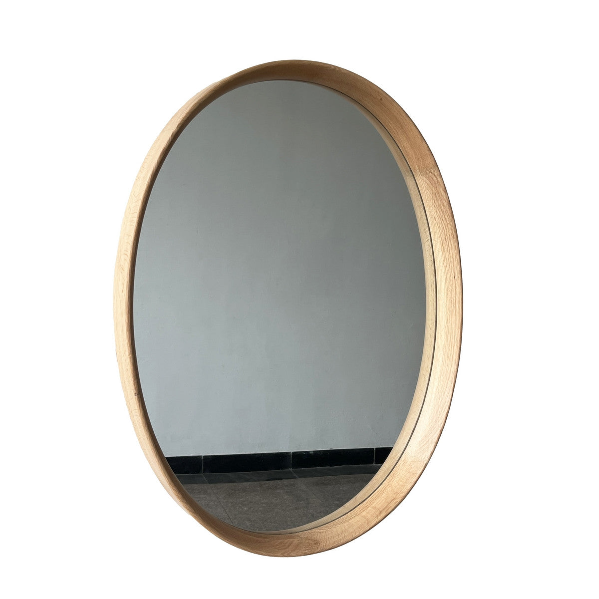 Enhance the beauty of your home with our organic oak-framed mirror. Its timeless elegance adds warmth to any space, making it a versatile addition to any room. The inviting oval shape creates a soft touch, making it the perfect accent for your home décor.
