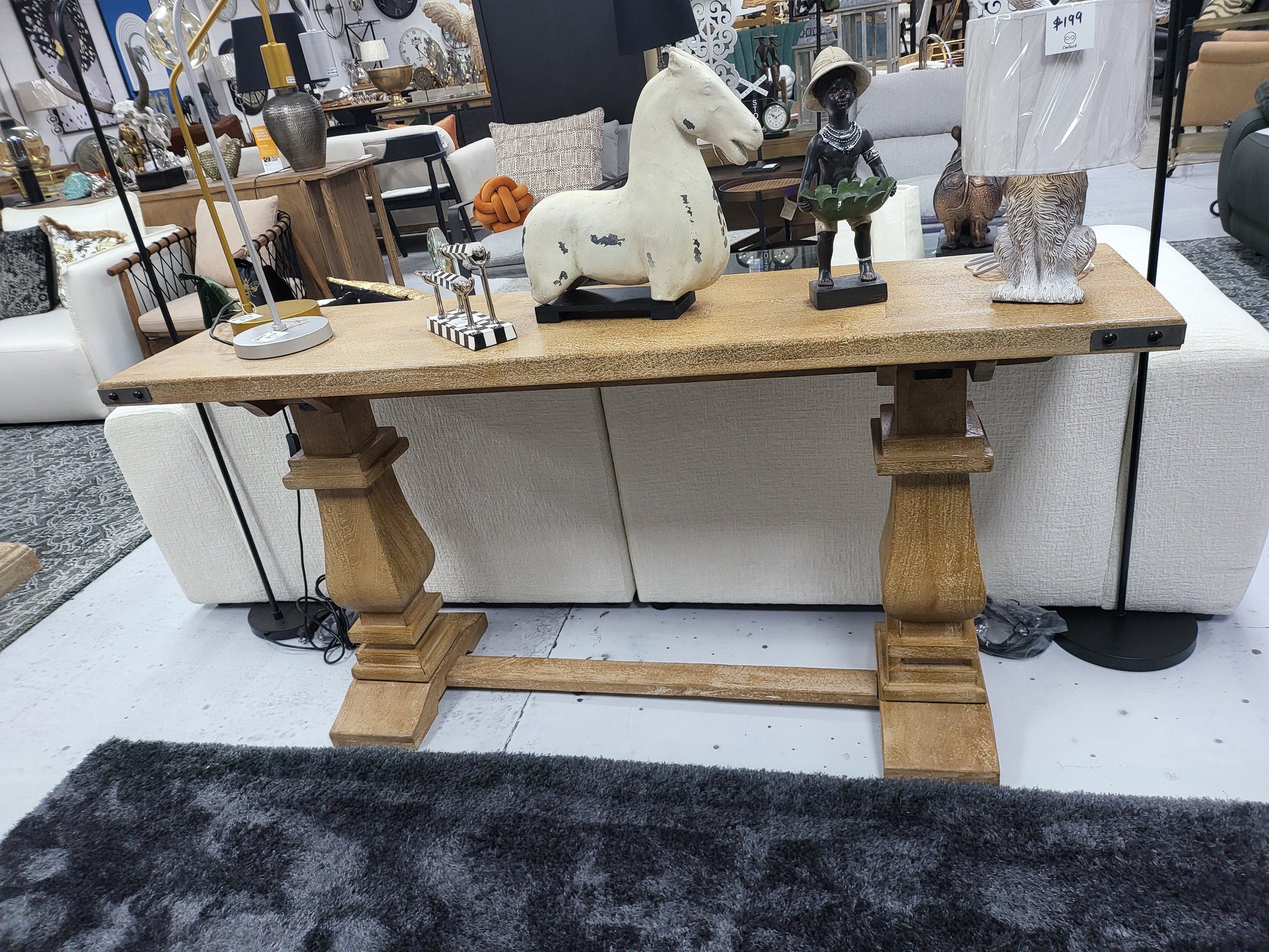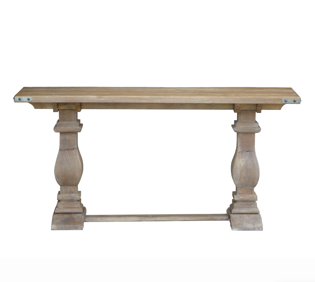Introduce elegance and charm into your home with our Provincial Console Table 1600. Crafted from sustainably harvested Mango wood, its beautiful tabletop features metal corners and a unique grain pattern. The robust, baluster leg ensures durability while the 'sandblasted' finish adds a sleek look. Easy to assemble, this French provincial style table is both low maintenance and high in quality.