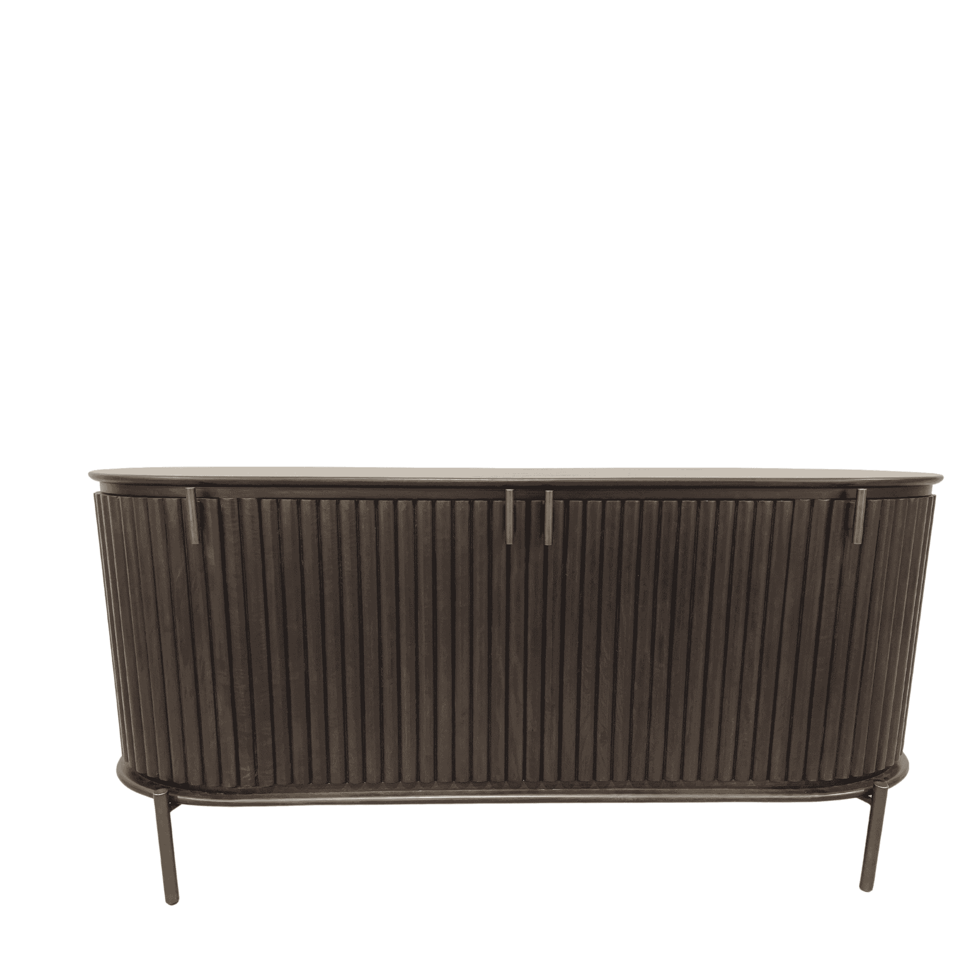 Introducing the Regency Curved Buffet Table! This sophisticated piece is crafted from strong mango timber and finished with a sleek black and brass palette - perfect for adding a touch of class to any living space. Its curved design, timeless colouring and strong construction make it a timeless addition to any home.