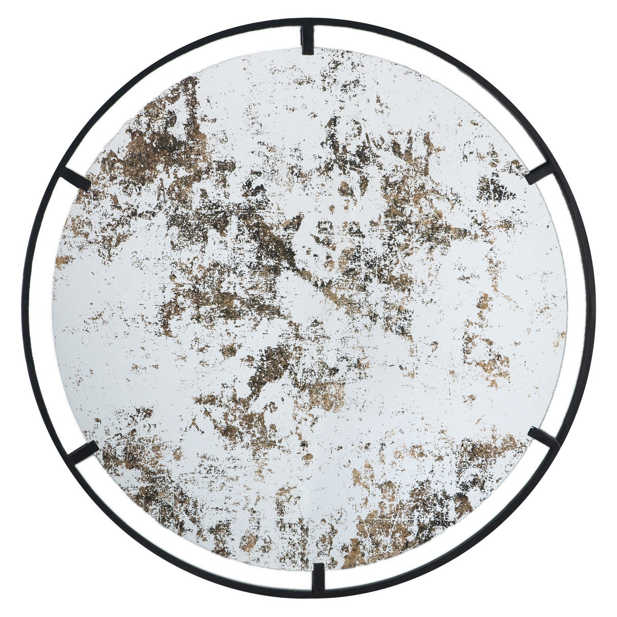 Instantly upgrade any space with the beautiful Theodor Round Antique Mirror. Its unique antiqued mirror and bold metal frame combine to create a strong industrial design that will add a sophisticated touch to any room. Its warm wooden tones complete the look perfectly, making it the ideal accent for any home.