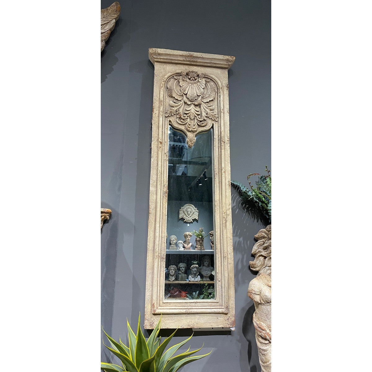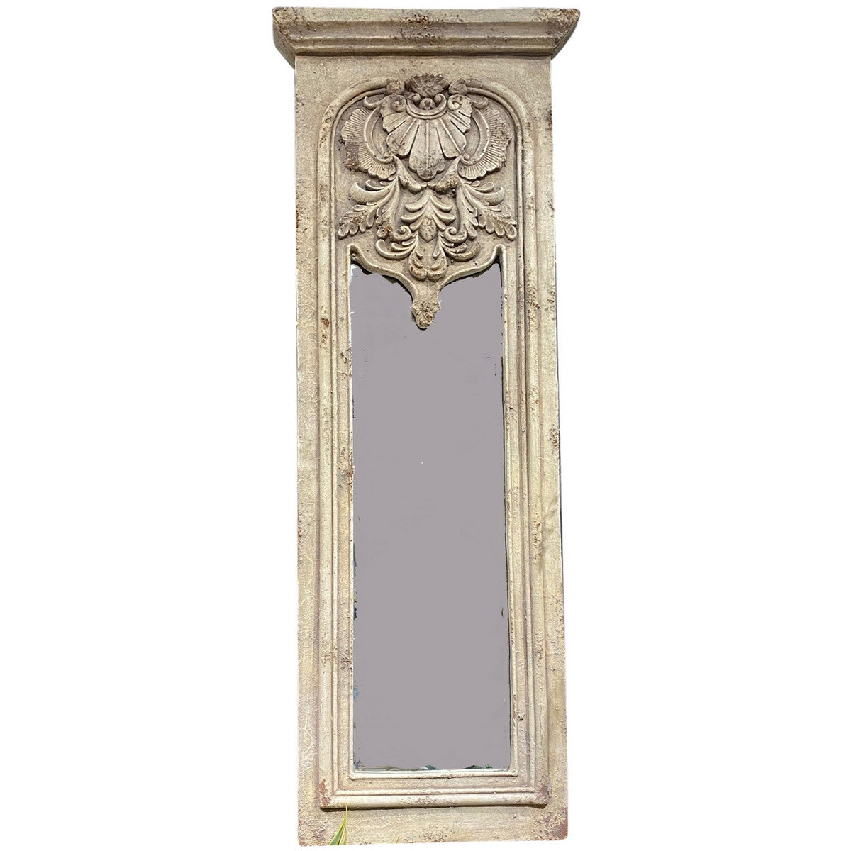 Enhance the elegance of any space with our exquisite antique-inspired mirror. Its ornate frame and distressed finish add a touch of vintage charm and character. A timeless accent piece that exudes sophistication and luxury. Elevate your decor with this unique and tasteful addition.